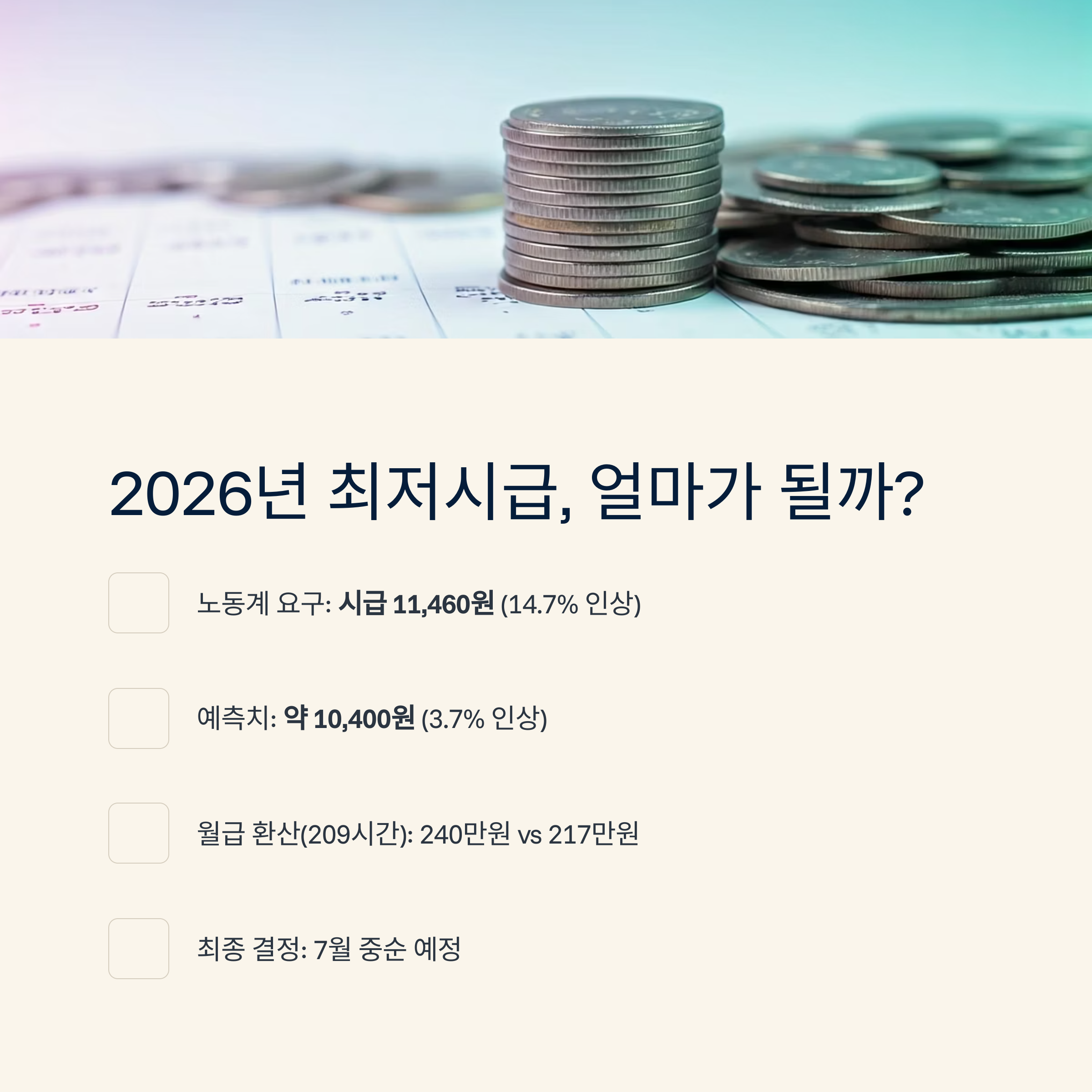 2026년 최저시급, 과연 내 월급은 얼마나 오를까요? (최저임금 협상 쟁점 분석)
