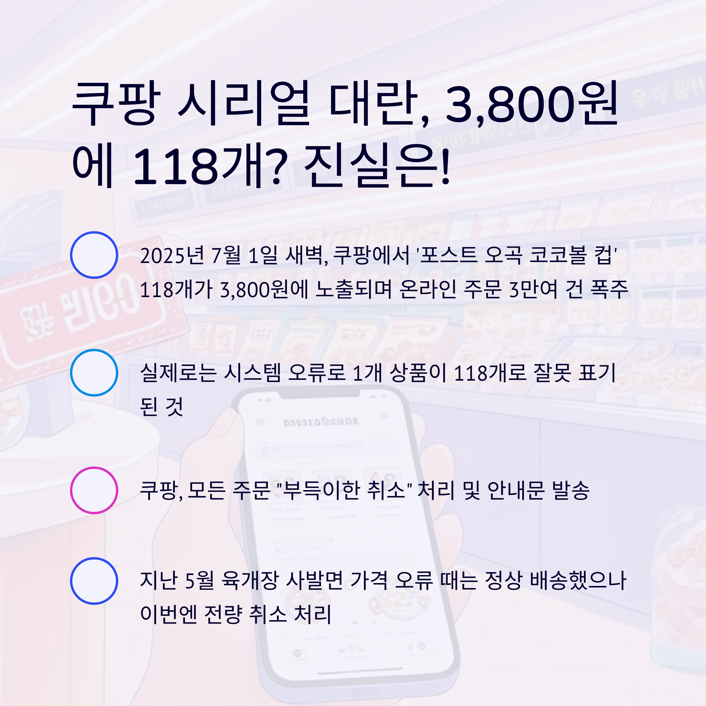 쿠팡 시리얼 대란 전말, 3,800원에 118개? (가격 오류, 주문 취소, 보상 총정리)