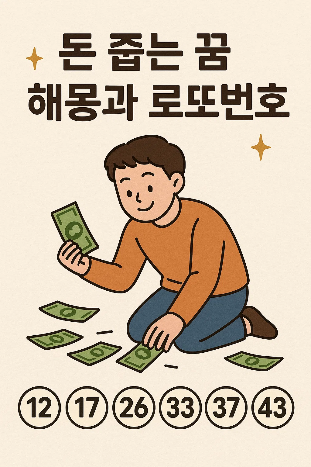 돈 줍는 꿈 해몽과 로또번호|2025 재물운의 징조일까?지갑, 지폐, 동전을 줍는 꿈의 의미와 관련된 로또 숫자를 정리했습니다.💰 돈 줍는 꿈은 어떤 의미일까?꿈에서 돈을 줍는 장면은 전통적으로 '뜻밖의 행운', '기회 포착', '금전운 상승'을 의미합니다. 특히 아래의 해석이 많습니다:지폐를 줍는 꿈: 재물운, 새로운 수입원 등장동전을 줍는 꿈: 작지만 확실한 재운, 뜻밖의 용돈지갑을 줍는 꿈: 기회와 함께 책임이 따르는 일돈을 주웠다가 잃는 꿈: 불안정한 재정, 투자 손실 경고🔢 로또번호와 연결되는 숫자꿈 해몽에서 돈과 관련된 숫자는 5, 10, 15, 23, 30, 42 등으로 간주되는 경우가 많습니다.추천 로또번호:5, 10, 15, 23, 30, 42보너스 번호: 8※ 재미로 참고하시되, 꿈..